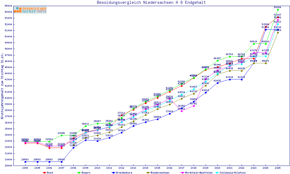 | Besoldungsvergleich A 8 im Jahr 2025 | Endgehalt | |||||||