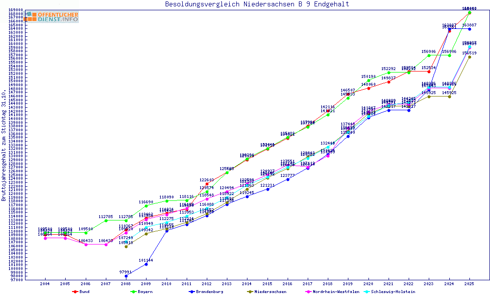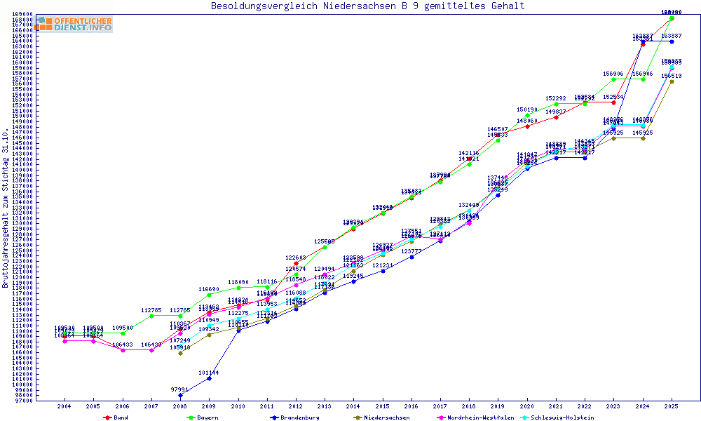 | Besoldungsvergleich B 9 im Jahr 2025 | gemitteltes Gehalt | ||||||