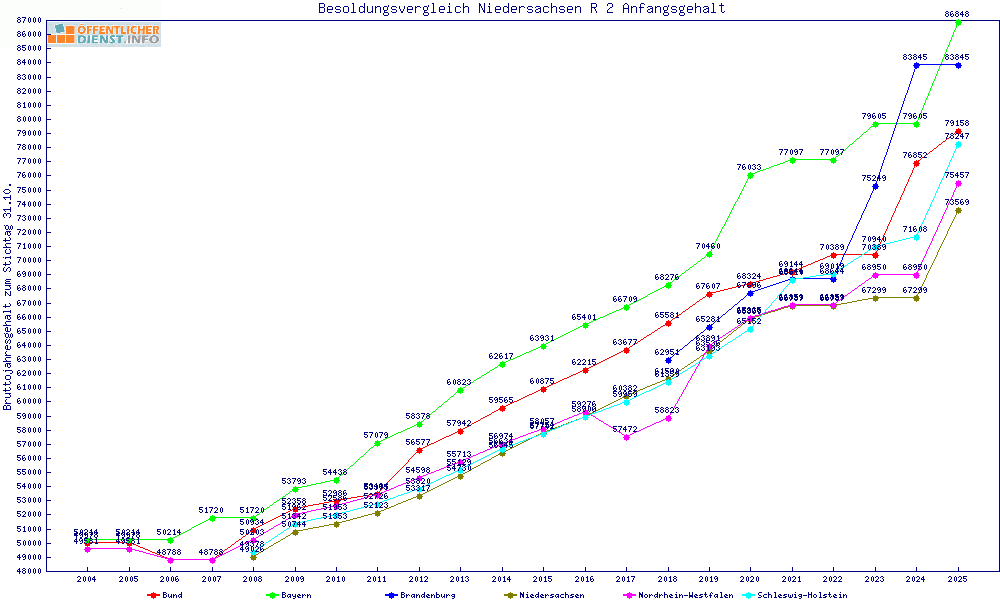 | Besoldungsvergleich R 2 im Jahr 2025 | Anfangsgehalt | ||||||