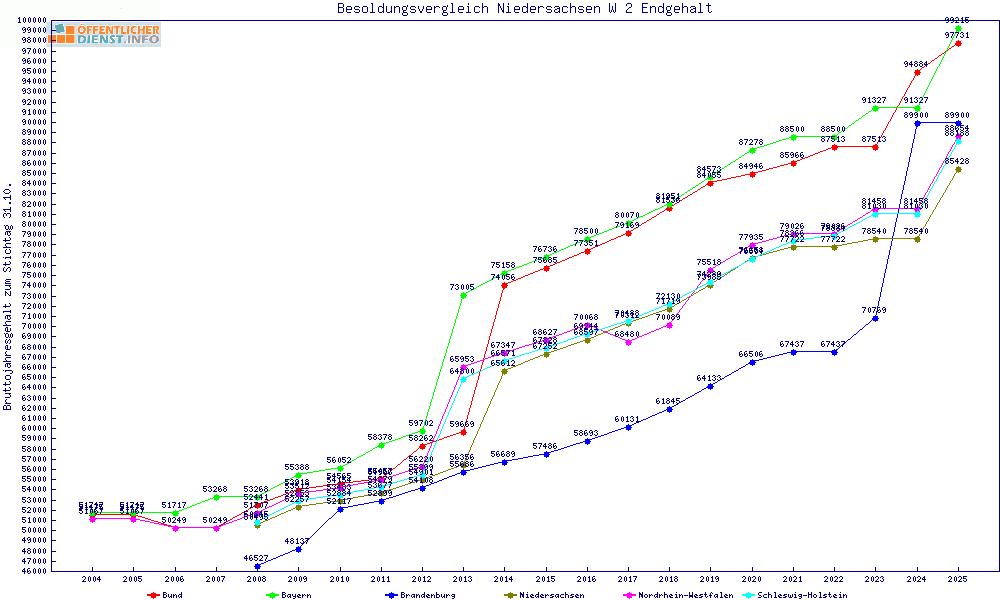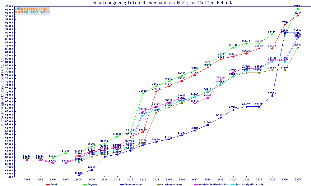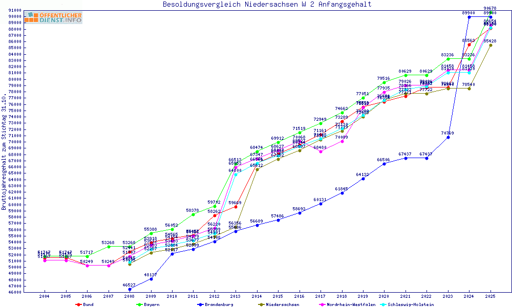 | Sachsen | 87.990 € | +2561 € | +3.0% | +1749 € | +2.0% | ||