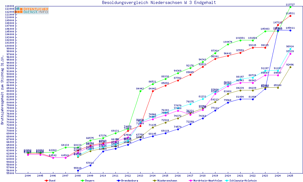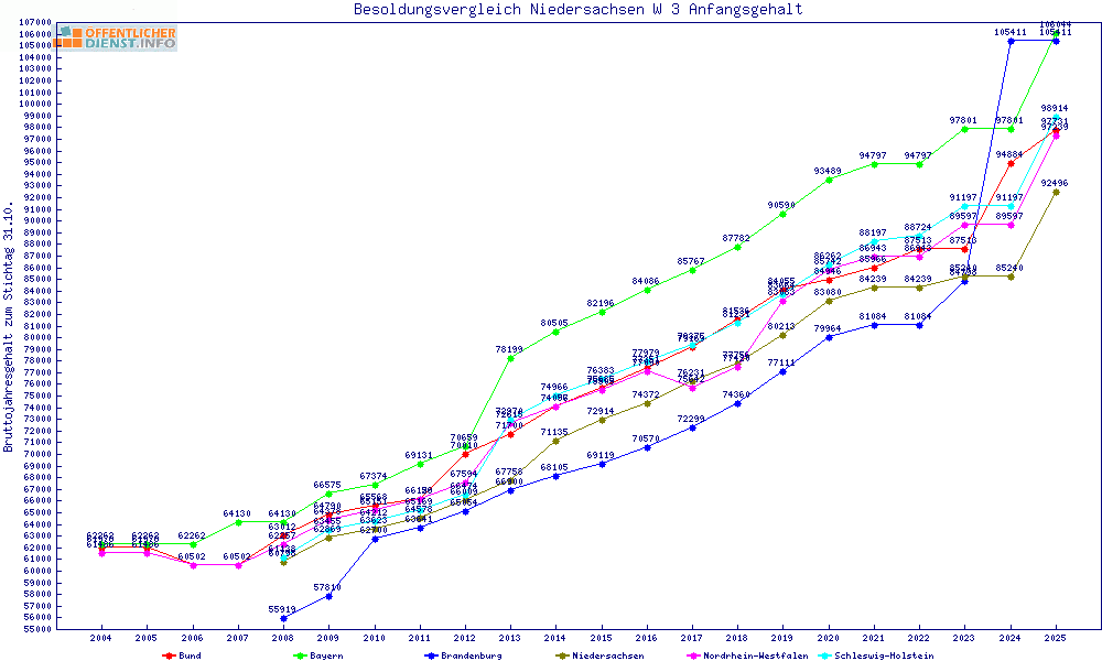 | Besoldungsvergleich W 3 im Jahr 2025 | Anfangsgehalt | ||||||