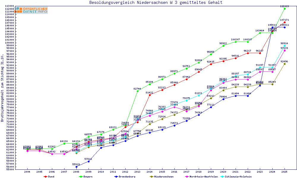 | Besoldungsvergleich W 3 im Jahr 2025 | gemitteltes Gehalt | ||||||