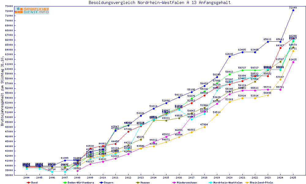 | Besoldungsvergleich A 13 im Jahr 2025 | Anfangsgehalt | ||||||