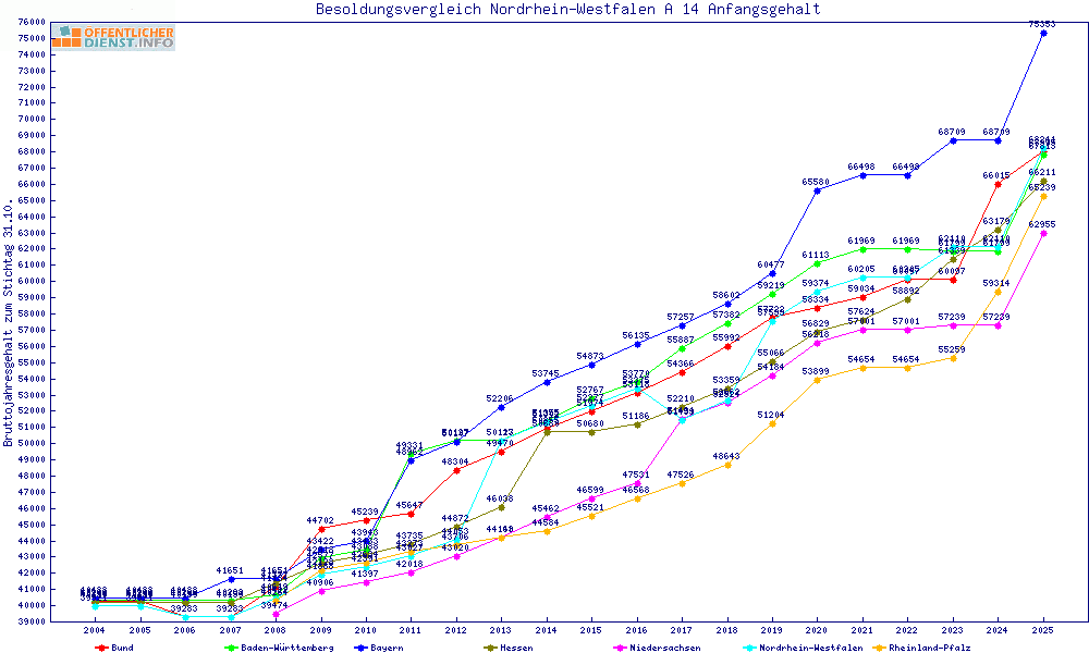 | Besoldungsvergleich A 14 im Jahr 2025 | Anfangsgehalt | ||||||