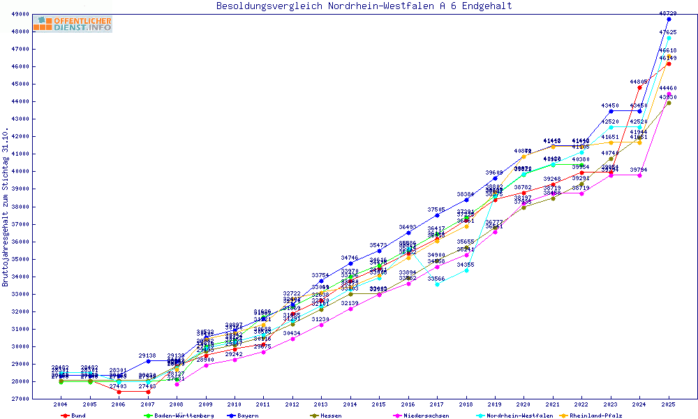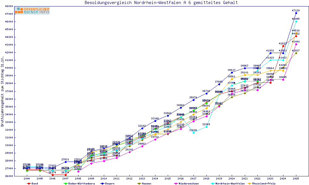 | Besoldungsvergleich A 6 im Jahr 2025 | gemitteltes Gehalt | ||||||