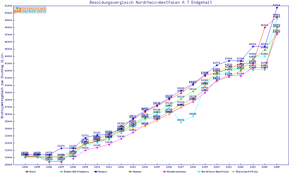 | Besoldungsvergleich A 7 im Jahr 2025 | Endgehalt | |||||||