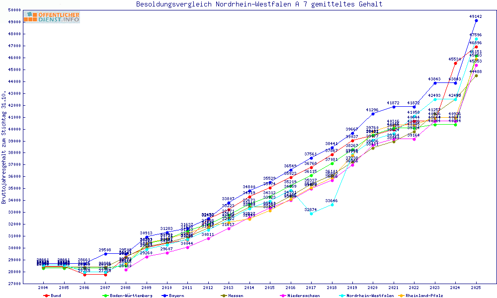 | Besoldungsvergleich A 7 im Jahr 2025 | gemitteltes Gehalt | ||||||