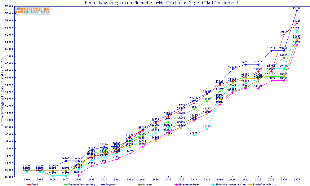 | Besoldungsvergleich A 9 im Jahr 2025 | gemitteltes Gehalt | ||||||