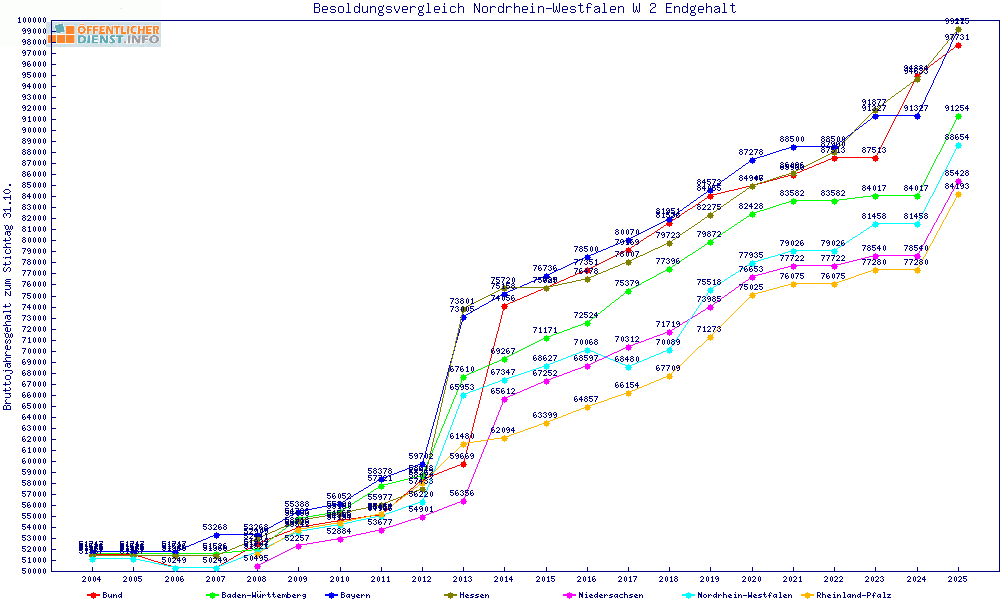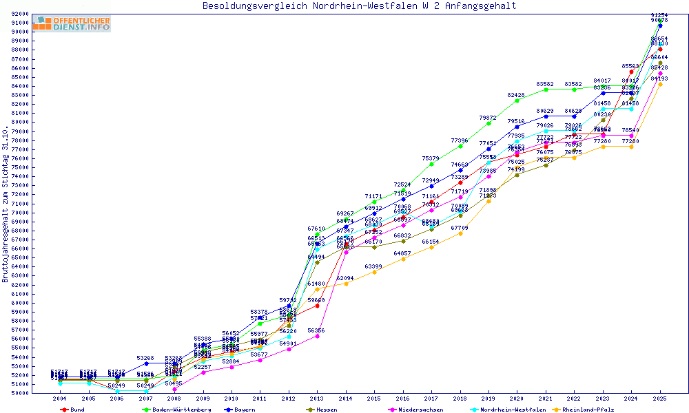 | Besoldungsvergleich W 2 im Jahr 2025 | Anfangsgehalt | ||||||