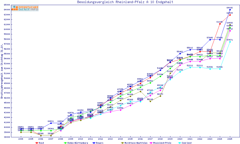 | Besoldungsvergleich A 10 im Jahr 2025 | gemitteltes Gehalt | ||||||