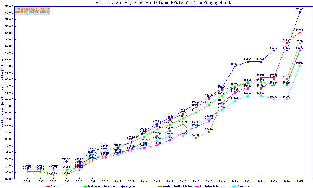 | Besoldungsvergleich A 11 im Jahr 2025 | Anfangsgehalt | ||||||