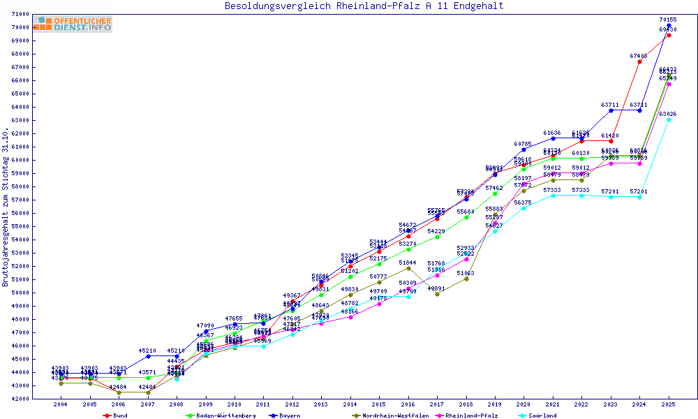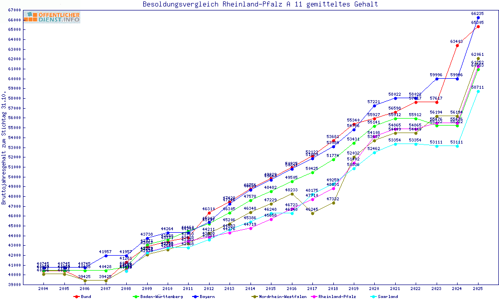 | Besoldungsvergleich A 11 im Jahr 2025 | gemitteltes Gehalt | ||||||
