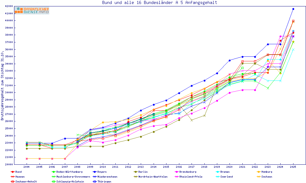 | Besoldungsvergleich A 5 im Jahr 2025 | Anfangsgehalt | ||||||