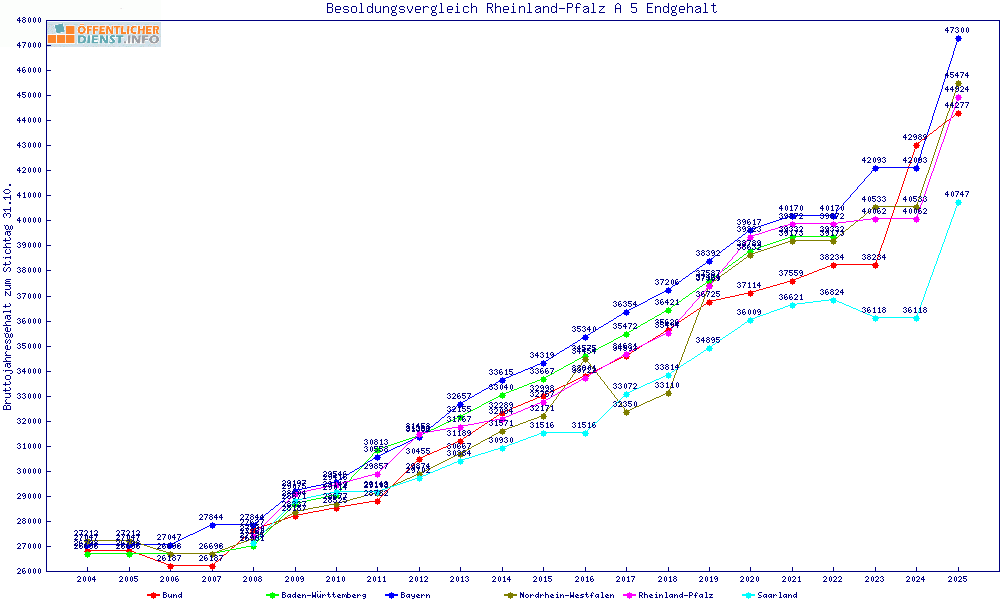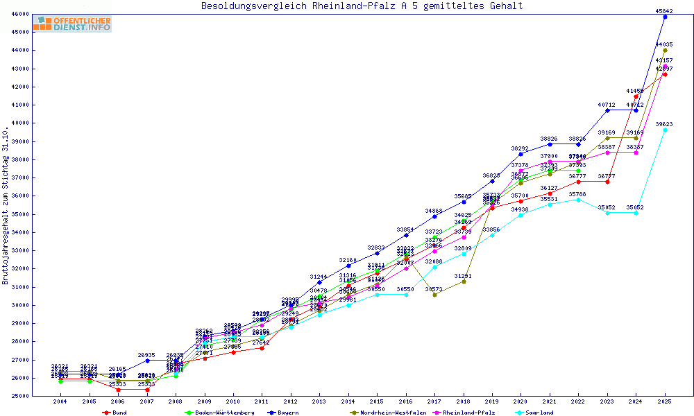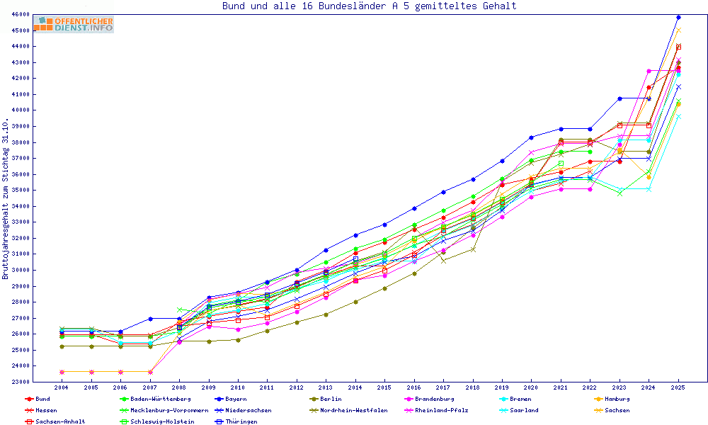 | Besoldungsvergleich A 5 im Jahr 2025 | gemitteltes Gehalt | ||||||