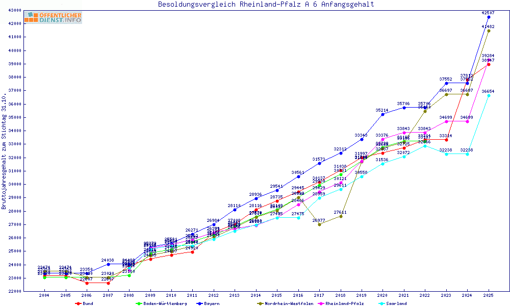 | Besoldungsvergleich A 6 im Jahr 2025 | gemitteltes Gehalt | ||||||
