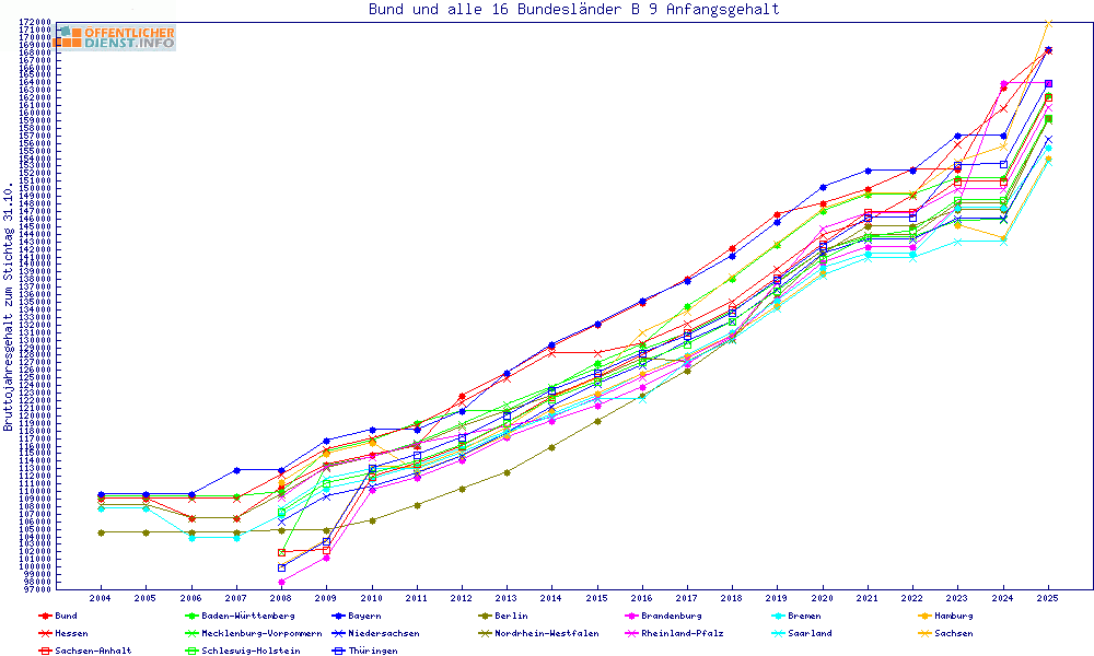 | Besoldungsvergleich B 9 im Jahr 2025 | Anfangsgehalt | ||||||
