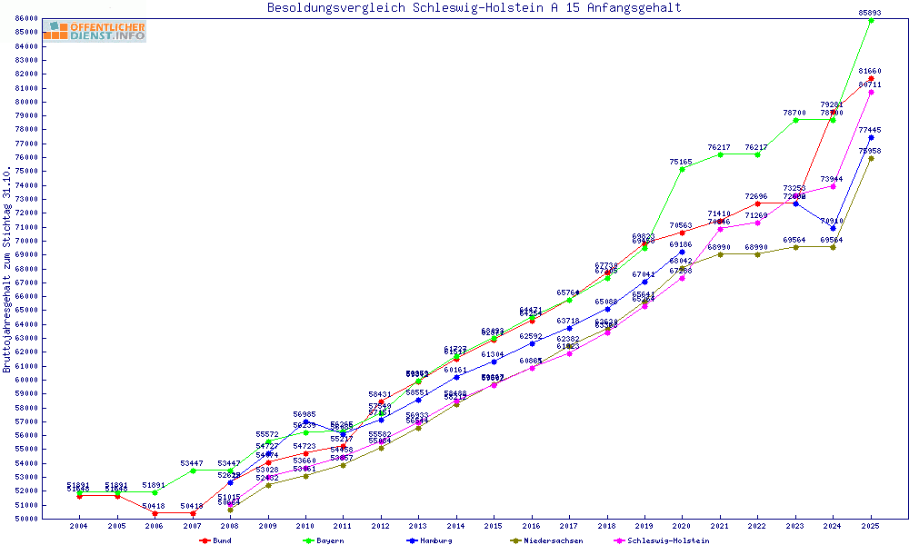 | Besoldungsvergleich A 15 im Jahr 2025 | Anfangsgehalt | ||||||