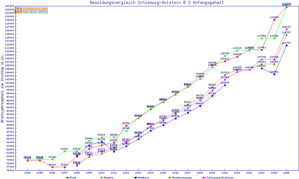 | Besoldungsvergleich B 3 im Jahr 2025 | Anfangsgehalt | ||||||