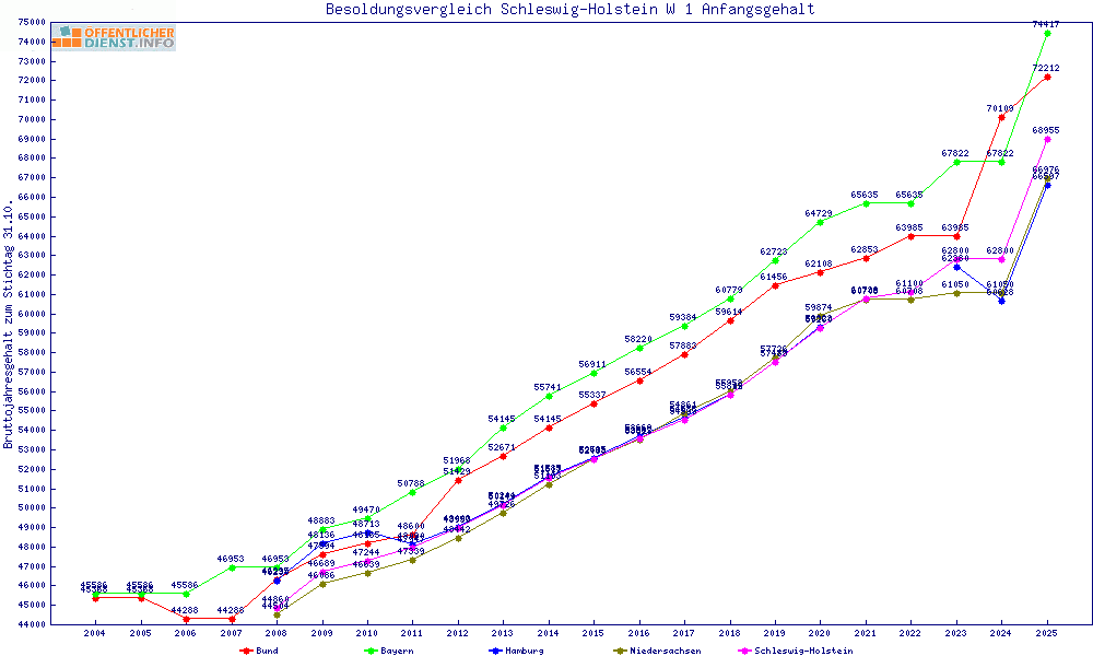 | Besoldungsvergleich W 1 im Jahr 2025 | Anfangsgehalt | ||||||