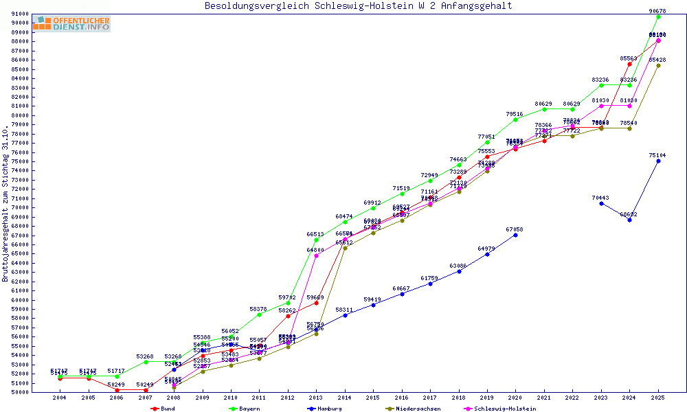 | Sachsen-Anhalt | 90.819 € | +2630 € | +3.0% | +4578 € | +5.3% | ||