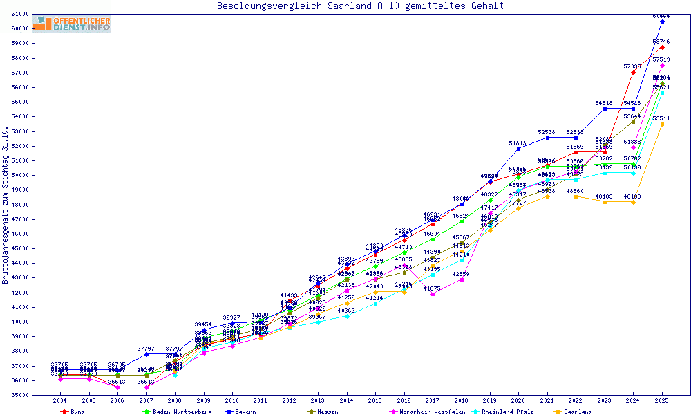| Besoldungsvergleich A 10 im Jahr 2025 | gemitteltes Gehalt | ||||||