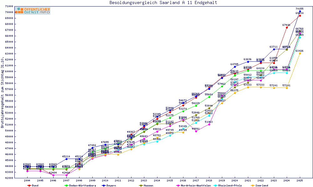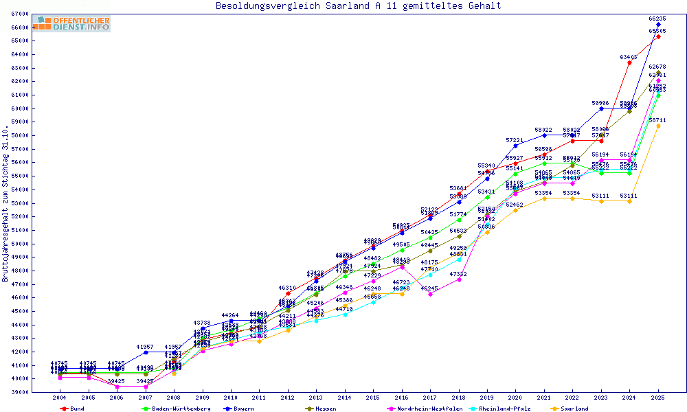 | Besoldungsvergleich A 11 im Jahr 2025 | gemitteltes Gehalt | ||||||