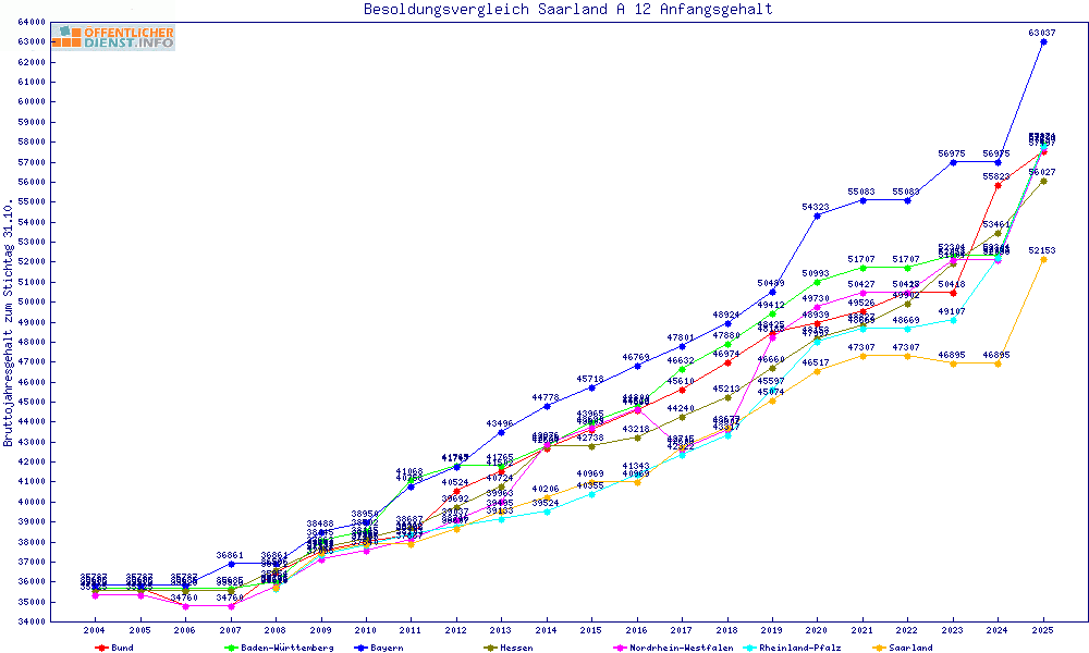 | Besoldungsvergleich A 12 im Jahr 2025 | Anfangsgehalt | ||||||