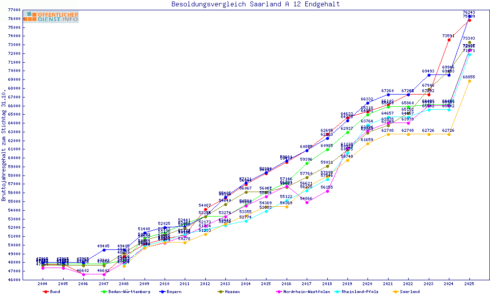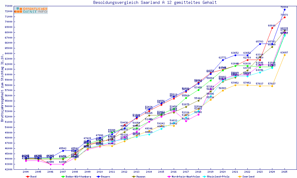 | Besoldungsvergleich A 12 im Jahr 2025 | gemitteltes Gehalt | ||||||
