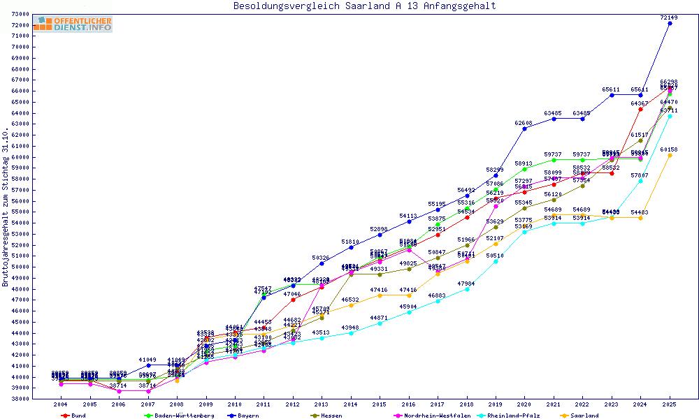 | Besoldungsvergleich A 13 im Jahr 2025 | Anfangsgehalt | ||||||