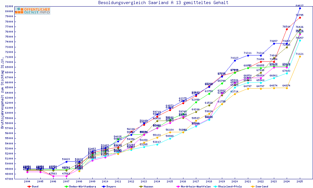 | Besoldungsvergleich A 13 im Jahr 2025 | gemitteltes Gehalt | ||||||