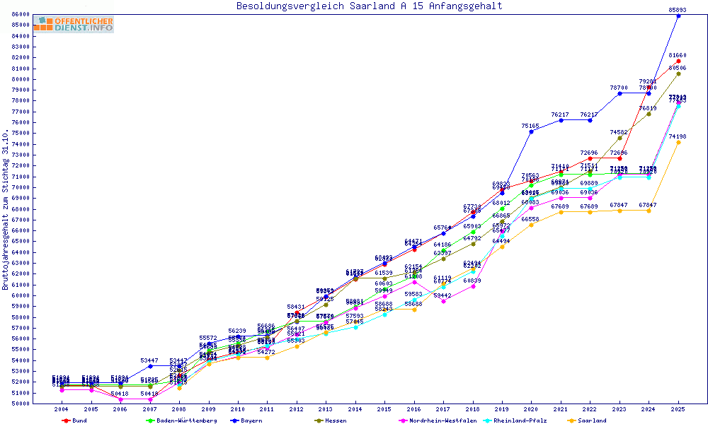 | Besoldungsvergleich A 15 im Jahr 2025 | Anfangsgehalt | ||||||