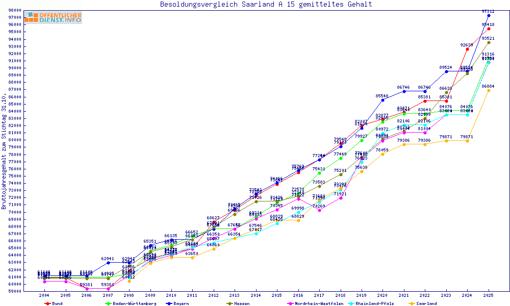 | Besoldungsvergleich A 15 im Jahr 2025 | gemitteltes Gehalt | ||||||