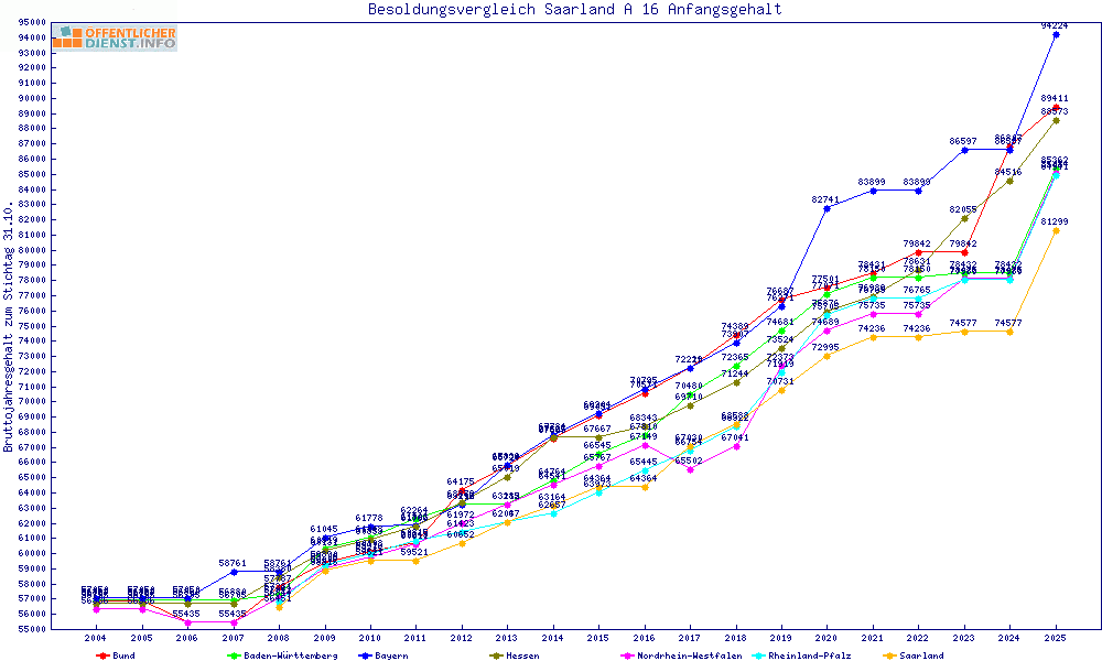 | Besoldungsvergleich A 16 im Jahr 2025 | Anfangsgehalt | ||||||