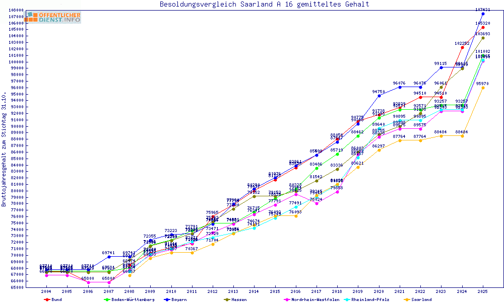 | Besoldungsvergleich A 16 im Jahr 2025 | gemitteltes Gehalt | ||||||