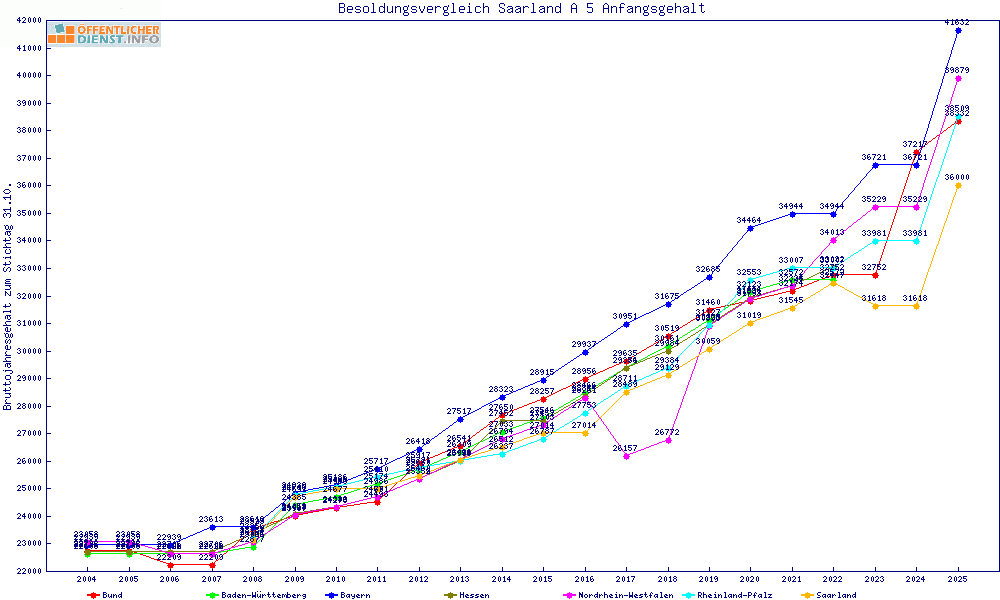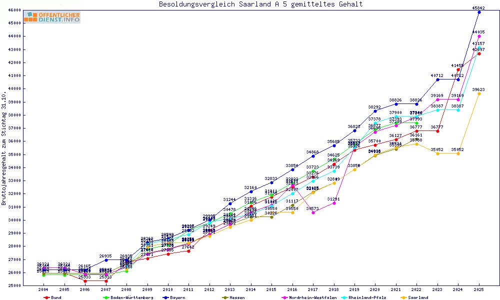| Besoldungsvergleich A 5 im Jahr 2025 | gemitteltes Gehalt | ||||||