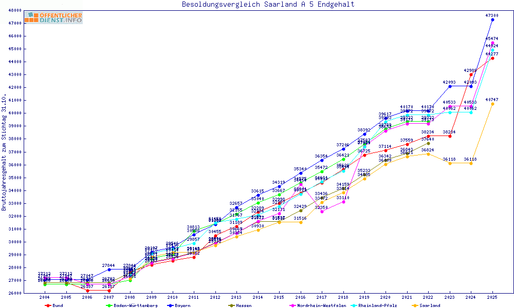 | Besoldungsvergleich A 5 im Jahr 2025 | Endgehalt | |||||||