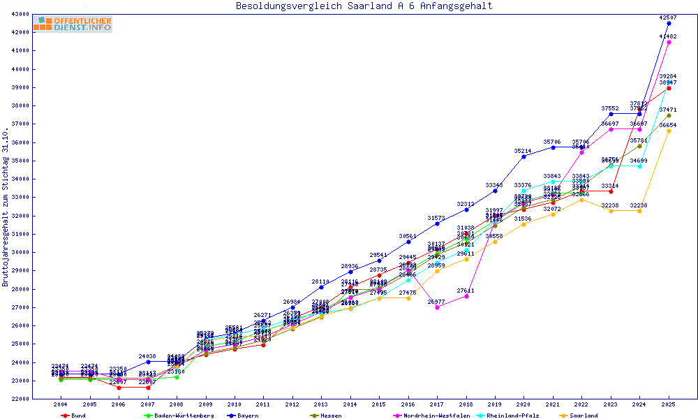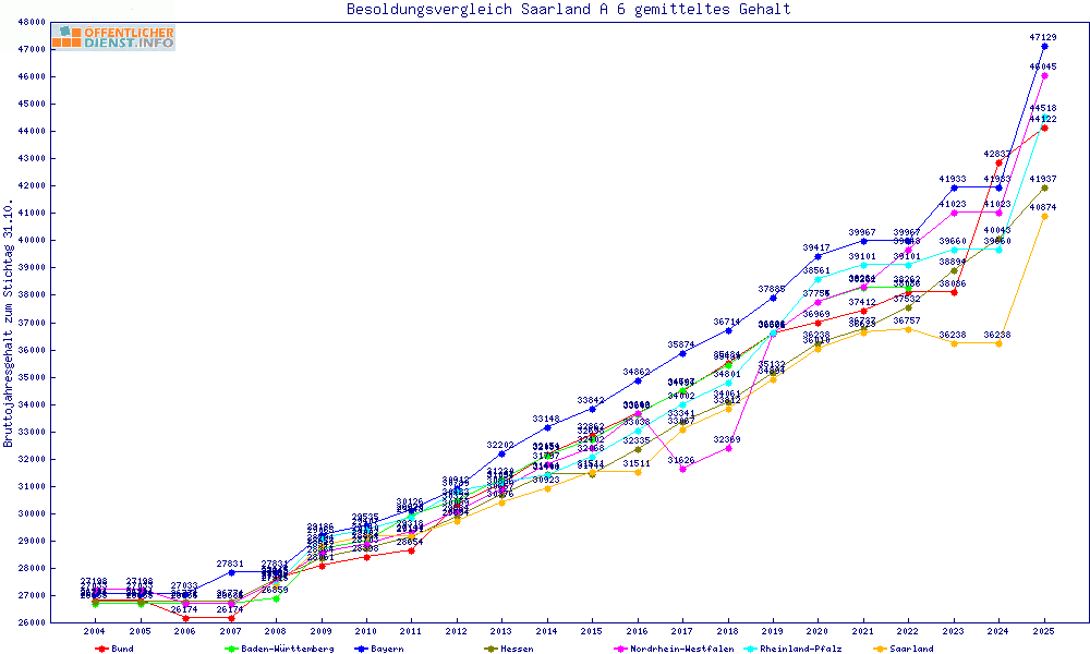 | Besoldungsvergleich A 6 im Jahr 2025 | gemitteltes Gehalt | ||||||