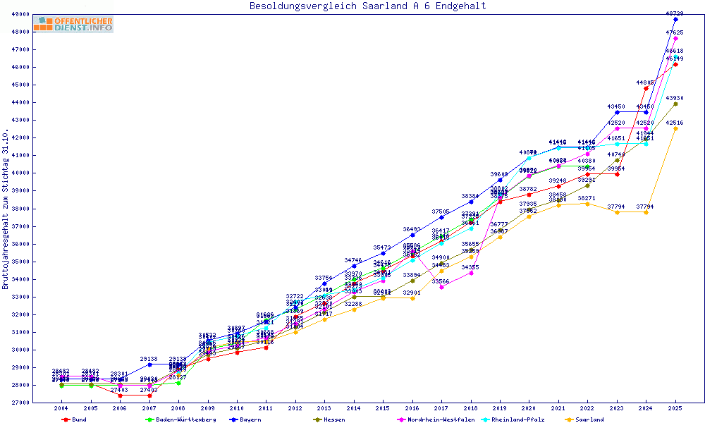 | Besoldungsvergleich A 6 im Jahr 2025 | Endgehalt | |||||||
