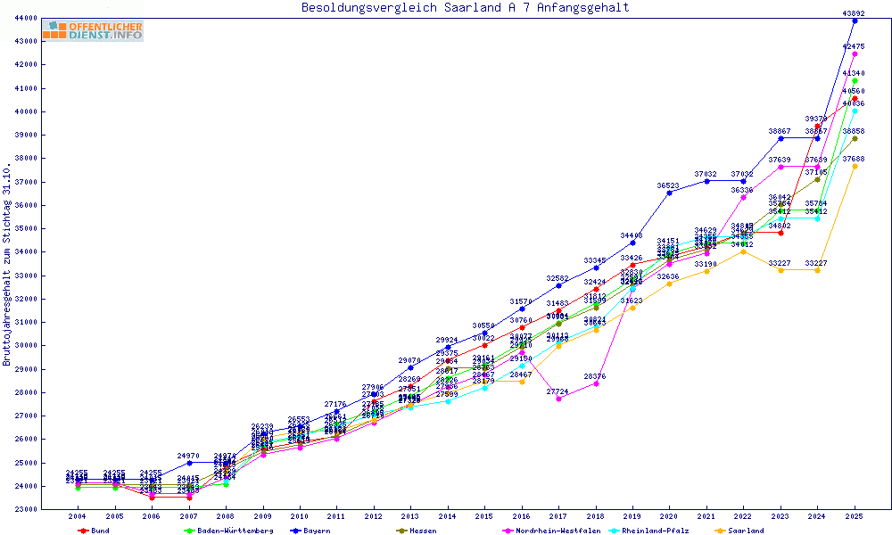 | Besoldungsvergleich A 7 im Jahr 2025 | Anfangsgehalt | ||||||