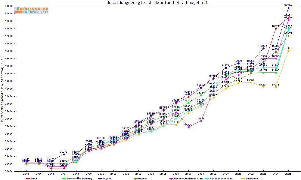 | Besoldungsvergleich A 7 im Jahr 2025 | Endgehalt | |||||||