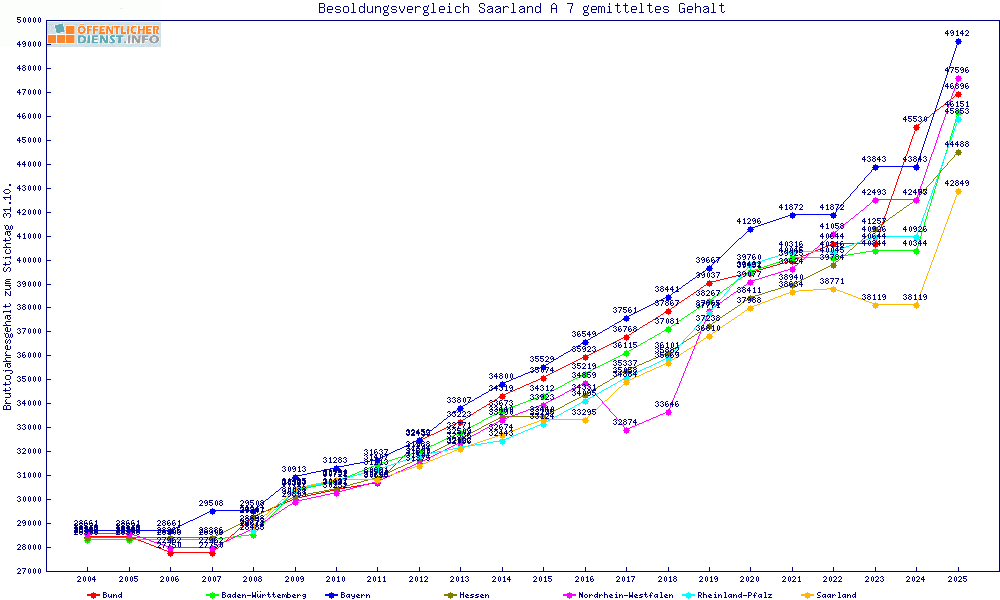 | Besoldungsvergleich A 7 im Jahr 2025 | gemitteltes Gehalt | ||||||