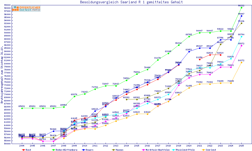 | Besoldungsvergleich R 1 im Jahr 2025 | Anfangsgehalt | ||||||
