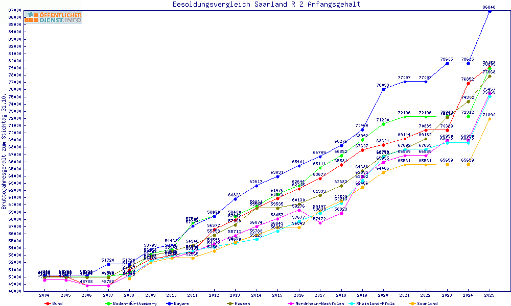 | Besoldungsvergleich R 2 im Jahr 2025 | Anfangsgehalt | ||||||