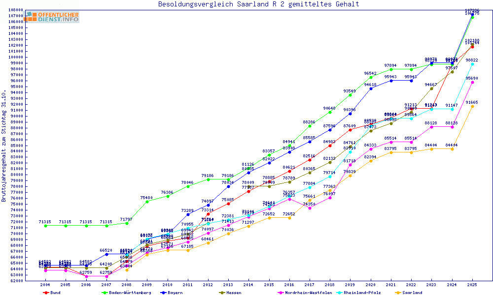 | Besoldungsvergleich R 2 im Jahr 2025 | gemitteltes Gehalt | ||||||
