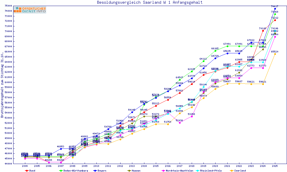 | Besoldungsvergleich W 1 im Jahr 2025 | Anfangsgehalt | ||||||