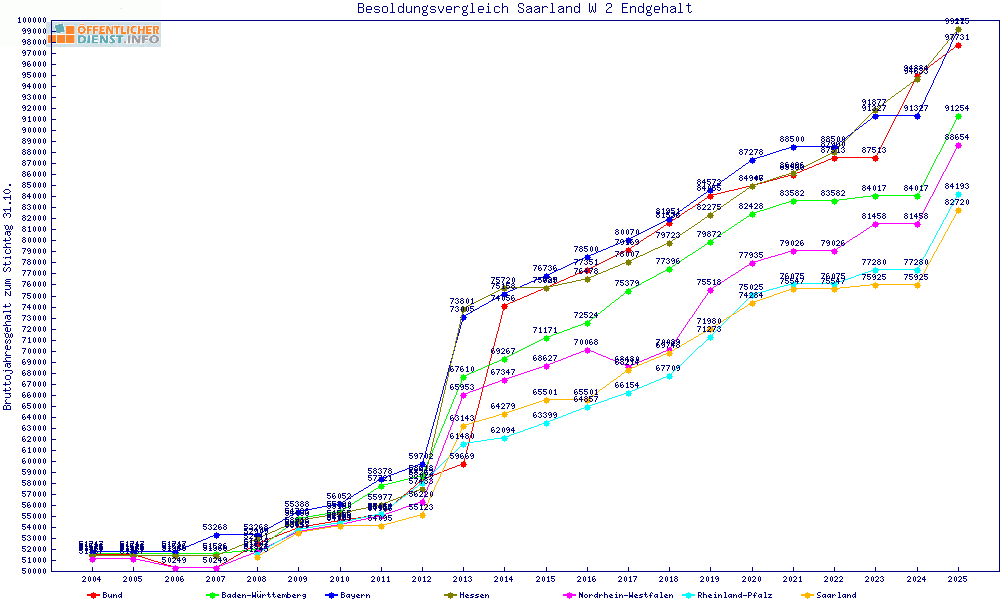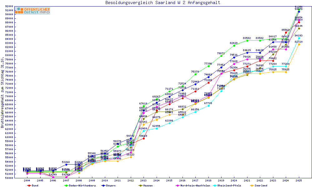 | Besoldungsvergleich W 2 im Jahr 2025 | Anfangsgehalt | ||||||