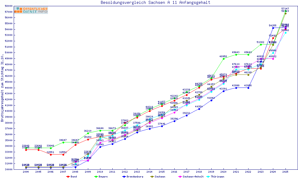 | Besoldungsvergleich A 11 im Jahr 2025 | Anfangsgehalt | ||||||
