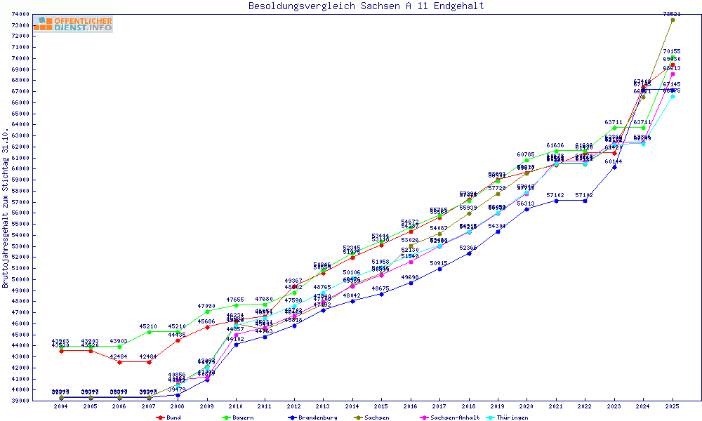 | Sachsen | 73.521 € | +6833 € | +10.2% | 28 Jahre | ||||