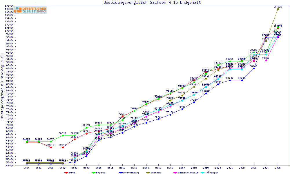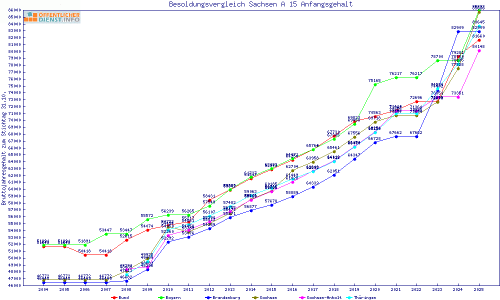 | Besoldungsvergleich A 15 im Jahr 2025 | Anfangsgehalt | ||||||