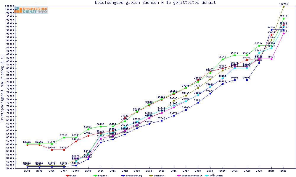 | Besoldungsvergleich A 15 im Jahr 2025 | gemitteltes Gehalt | ||||||
